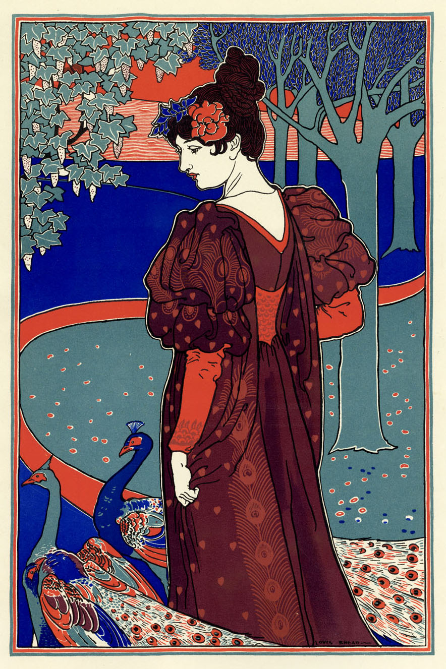 Here he married his wife Catherine Bogart Yates and became a prominent poster artist in the U.S. During the poster craze of the early 1890s, Rhead’s poster art appeared regularly in Harper’s Bazaar, Harper’s Magazine, St. Nicolas, Century Magazine, Ladies Home Journal and Scribner’s Magazine. In 1895 he won a Gold Medal for ‘Best American Poster Design’ at the first International Poster Show in Boston.